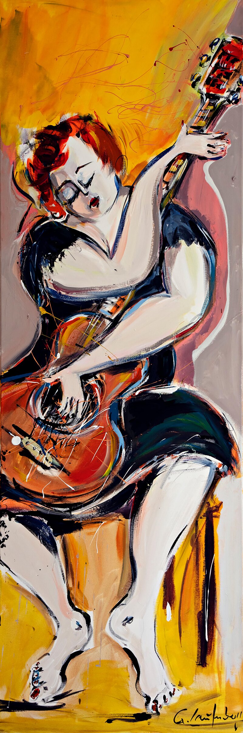 Die Akademie stellt vier farbenfrohe Bilder aus der Musikerinnen-Serie der Künstlerin Gerda Laufenberg aus, von denen auf dieser Website eines gezeigt wird. Ohne Musik wäre unsere Kulturarbeit undenkbar. Mit verschiedenen Bildern und Skulpturen würdigen wir die Musik nicht nur akustisch, sondern auch visuell: Musik scheint von der Wand zu ertönen, auch wenn gerade kein Konzert stattfindet. Präsenz ohne Anwesenheit hat Laufenberg veranlasst, ihre kleine Serie zu malen, wie sie in einem kurzen Interview zu ihren Bildern am 5. November 2019 erzählt: