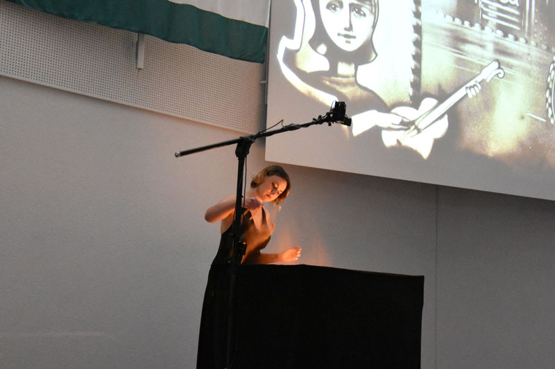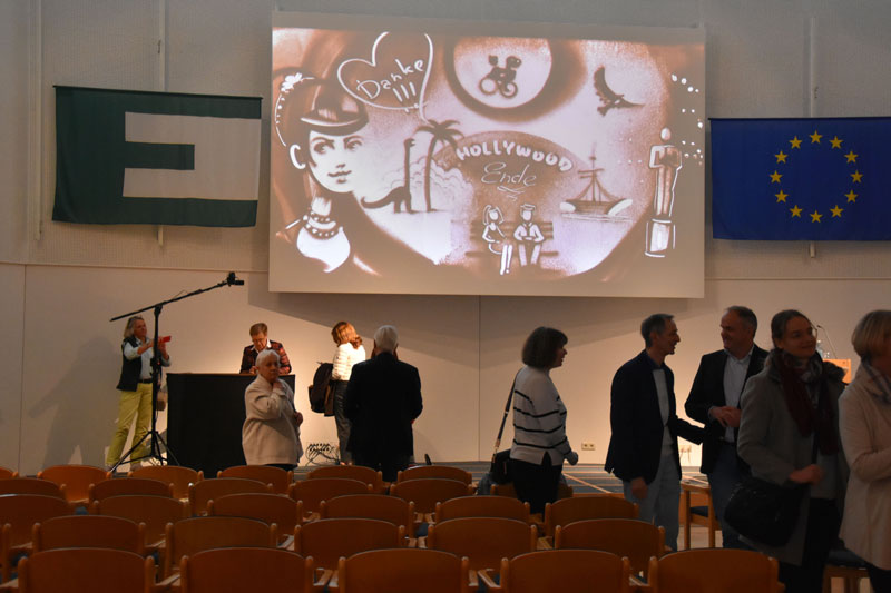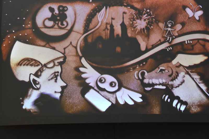 Das Publikum erlebte einen magischen Morgen: Irina Titova streute Sand auf eine von unten beleuchtete Scheibe, der auf eine Leinwand projiziert wurde. Dabei ging es auf eine Reise in die Welt des Films. Hier traf der Erzähler – mit der Stimme von Sky Du Mont - all die großen und kleinen Helden der beliebtesten Kinofilme: von „Lassie“ über die Schurken aus „Spiel mir das Lied vom Tod“ und Capt’n Sparrow aus „Piraten der Karibik“ bis „ET“. Perfekt untermalt von der dazugehörigen Kinomusik. Nach den ersten Takten konnten die Gäste gar nicht schnell genug mitraten, wer dem Erzähler in seiner rasch getakteten Geschichte mit vielerlei Anspielungen nun als nächstes über den Weg laufen würde.