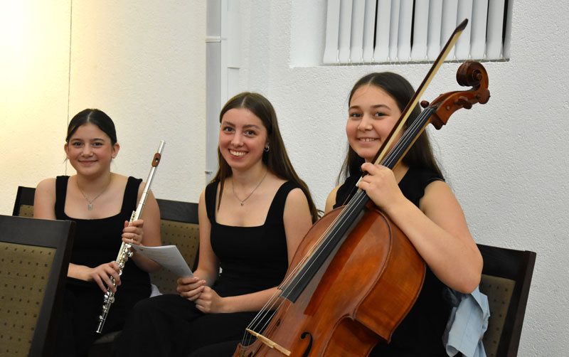 Den Auftakt machten die „Wagner-Sisters“ – das Trio Anjuli, bestehend aus den drei Schwestern Anastasia (Harfe), Jule (Cello) und Liese Wagner (Querflöte) aus dem Saarland. Ihre ersten Ensembleerfahrungen sammelten sie übrigens auf einer mehrwöchigen Straßenmusiktour durch ganz Italien. Schon beim Einspielen brachten sie das bereits anwesende Personal mit „The River Flows in You“ von Yiruma zum Träumen.