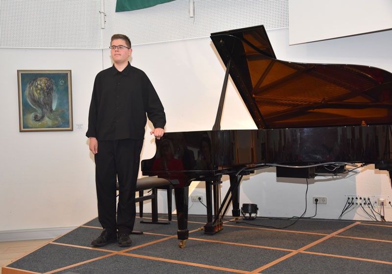 Auf den Auftritt der Saarländerinnen folgte Emilia Ostaszewska aus Luxemburg, die mit Bravour das ausgewählte Klarinettenkonzert Nr. 3 in B-Dur von Carl Stamitz meisterte. Vorab ins Schwitzen gebracht hatte das Team hingegen Paul Gurti aus dem Saarland, der nicht etwa zum Einspielen, sondern erst kurz vor dem Konzert auftauchte. Keine Sorgen ob Pauls Nicht-Erscheinens zu früher Stunde machte sich nur Daniel Franke, der das Projekt gemeinsam mit seiner Frau Mirijam seitens des Landesmusikrats Saar mitkoordiniert. Denn: „Der Paul ‚frisst‘ das Klavier und schläft womöglich lieber noch ein bisschen aus,“ so Franke. Will heißen: Er ist ein Ausnahmetalent, das auch ein fremdes Instrument beherrscht, sobald er den ersten Akkord gespielt hat. Und so war es auch: Rachmaninow und Prokofjew lagen bei ihm im Wortsinn in den richtigen, sozusagen goldenen Händen.